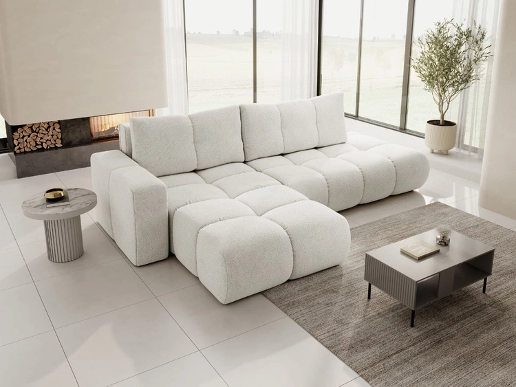 Narożnik L Prawy z funkcją spania i pojemnikiem Portland Kremowy