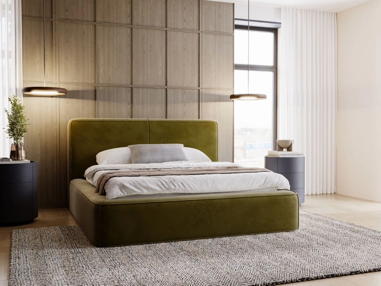 Łóżko tapicerowane z pojemnikiem i stelażem 200x200 Valencia Zielony