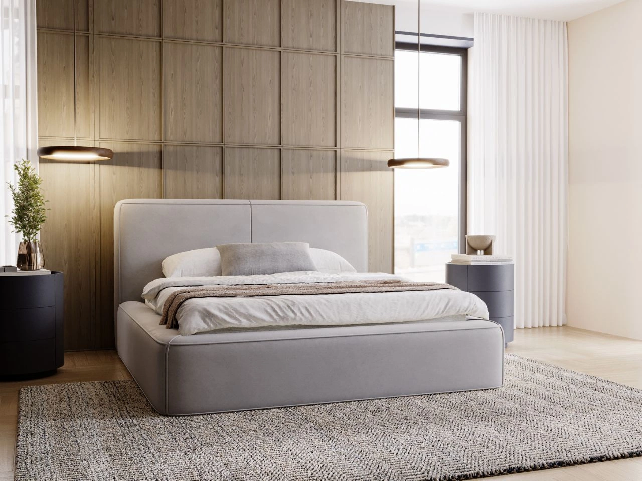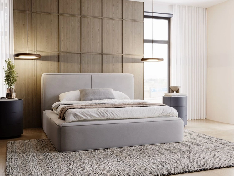 Łóżko tapicerowane z pojemnikiem i stelażem 200x200 Valencia Jasny szary