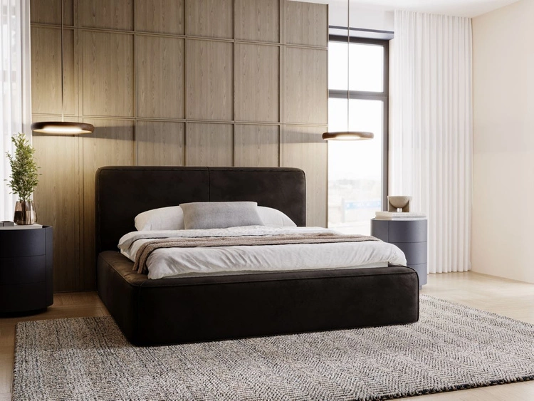 Łóżko tapicerowane z pojemnikiem i stelażem 200x200 Amaro Czarne