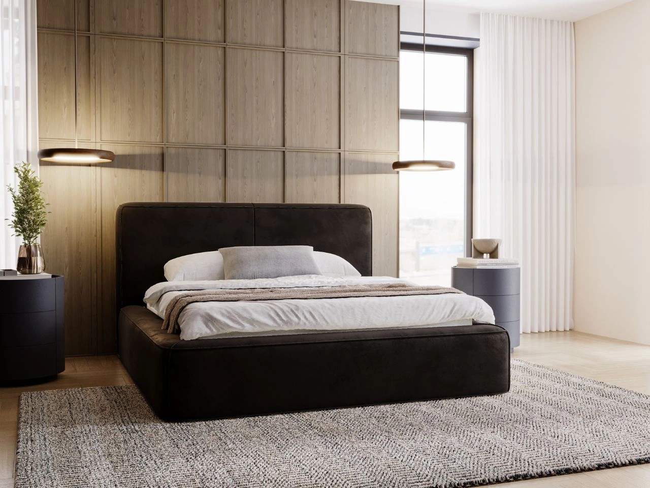 Łóżko tapicerowane z pojemnikiem i stelażem 160x200 Amaro Czarne
