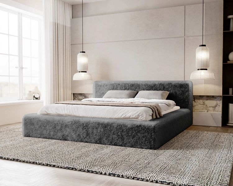 Łóżko tapicerowane z pojemnikiem i stelażem 160x200 cm Paris Szare