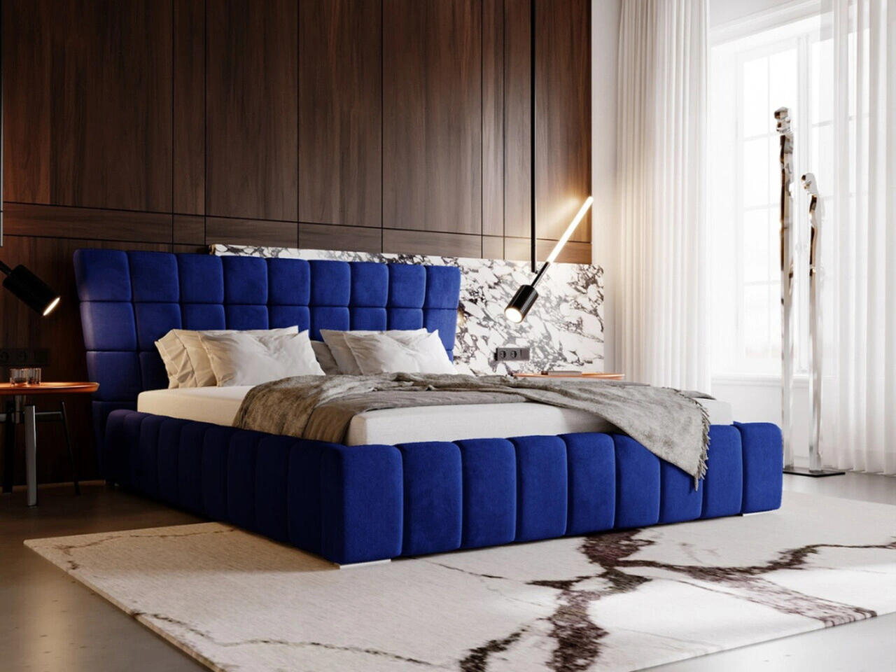 Łóżko tapicerowane z pojemnikiem i stelażem 180x200 cm Paris Niebieskie