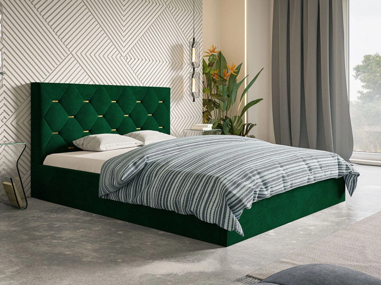 Łóżko tapicerowane z pojemnikiem i stelażem 140x200 Salento zielone