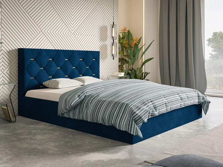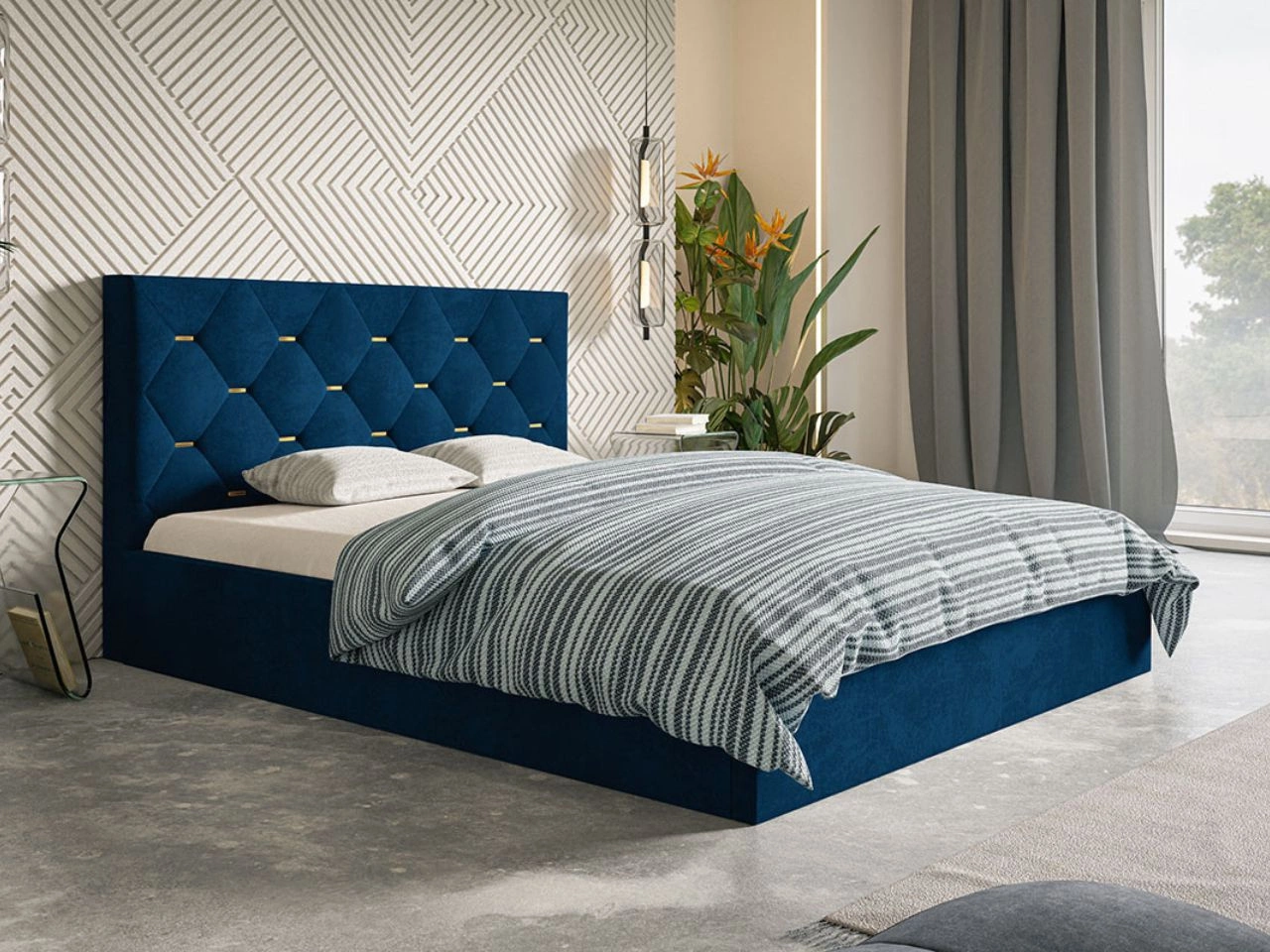 Łóżko tapicerowane z pojemnikiem i stelażem 140x200 Salento granatowe