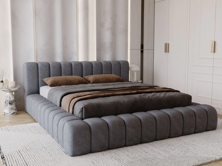 Łóżko tapicerowane ze stelażem 160x200 Luxe szary