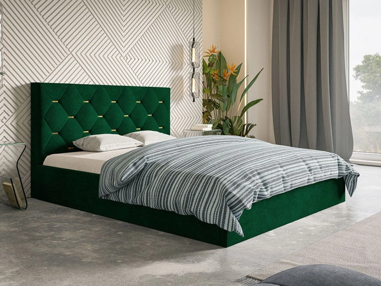 Łóżko tapicerowane z pojemnikiem i stelażem 160x200 Salento zielone