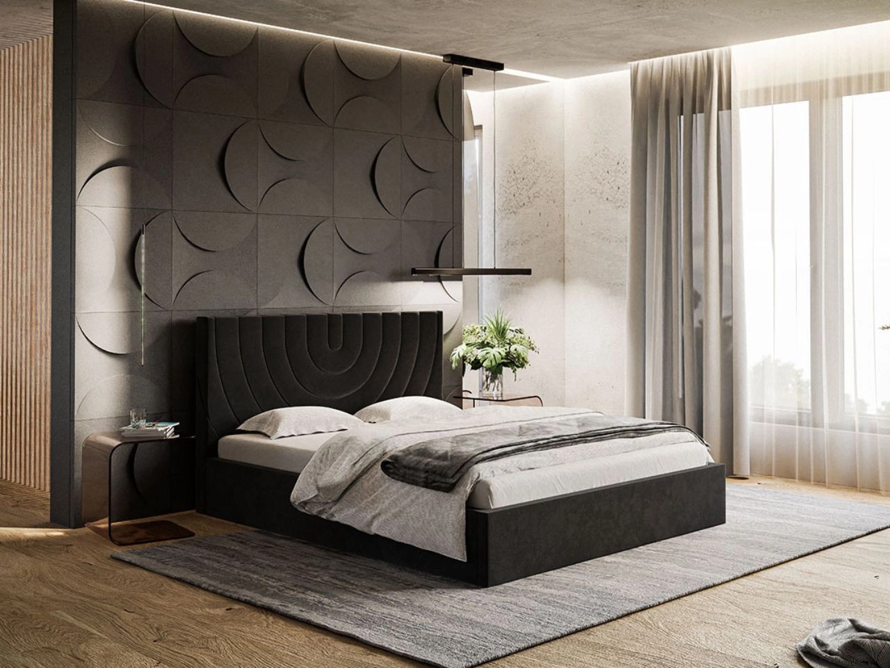 Łóżko tapicerowane z pojemnikiem i stelażem 180x200 Terra Ciemnoszare