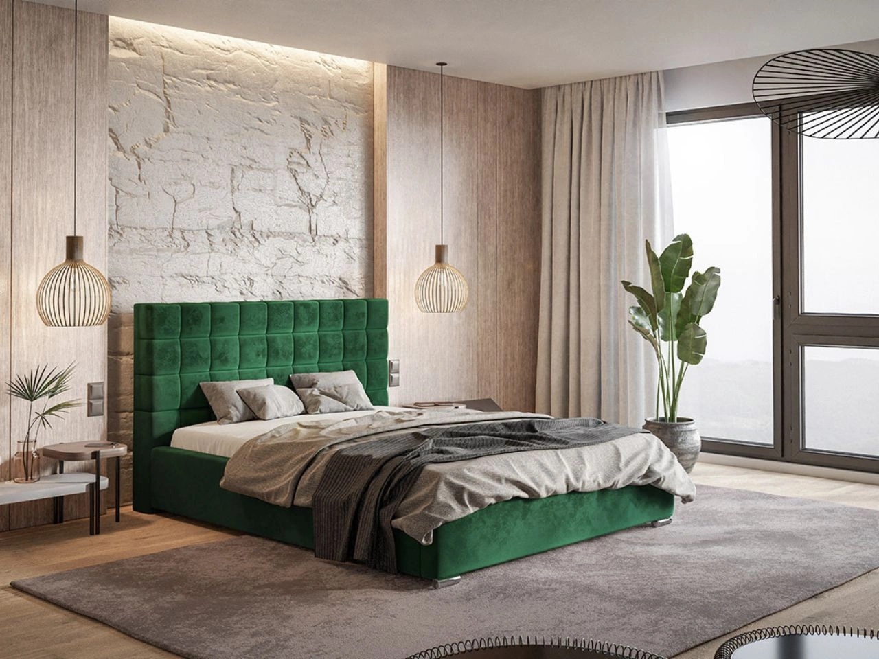Łóżko tapicerowane z pojemnikiem i stelażem 180x200 Terra Ciemnozielone