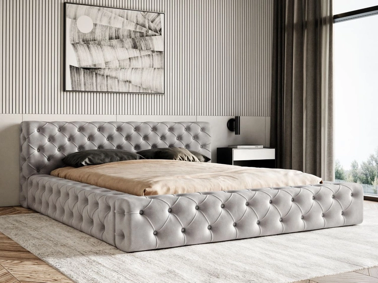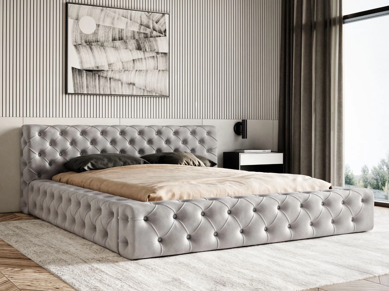 Łóżko tapicerowane z pojemnikiem i stelażem 160x200 Valencia Jasny szary