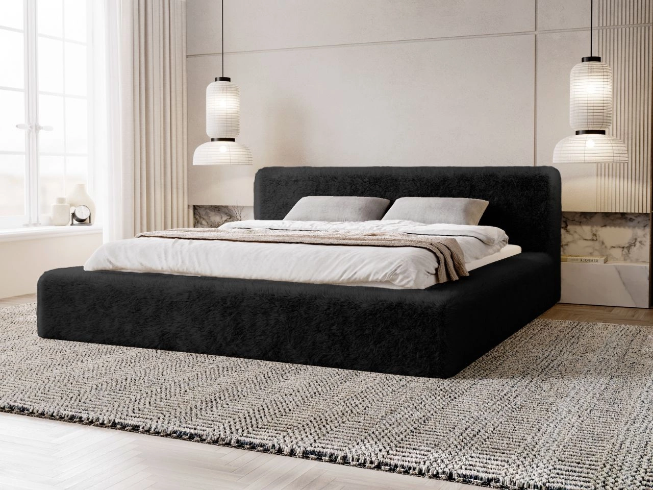 Łóżko tapicerowane z pojemnikiem i stelażem 200x200 Bonito Czarny