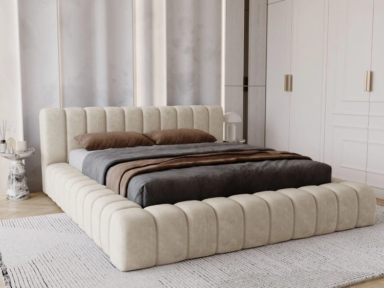 Łóżko tapicerowane z pojemnikiem i stelażem 180x200 Salento beżowe