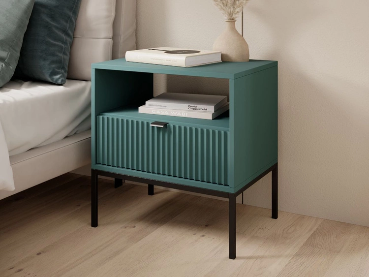 Stolik nocny z szufladą Amber zielony na czarnych nogach