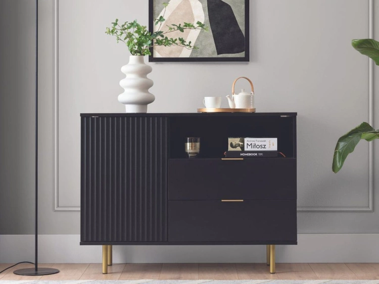 Szafka pod telewizor z szufladami i drzwiczkami Ankara Czarna