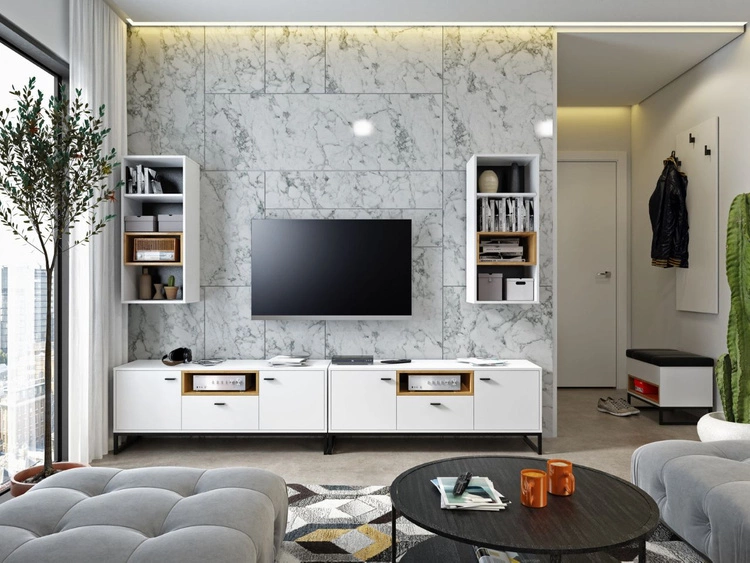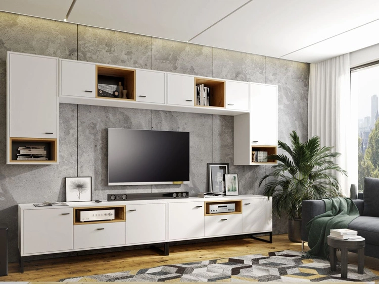 Zestaw szafek pod telewizor z drzwiczkami 200 cm Kioto Biały