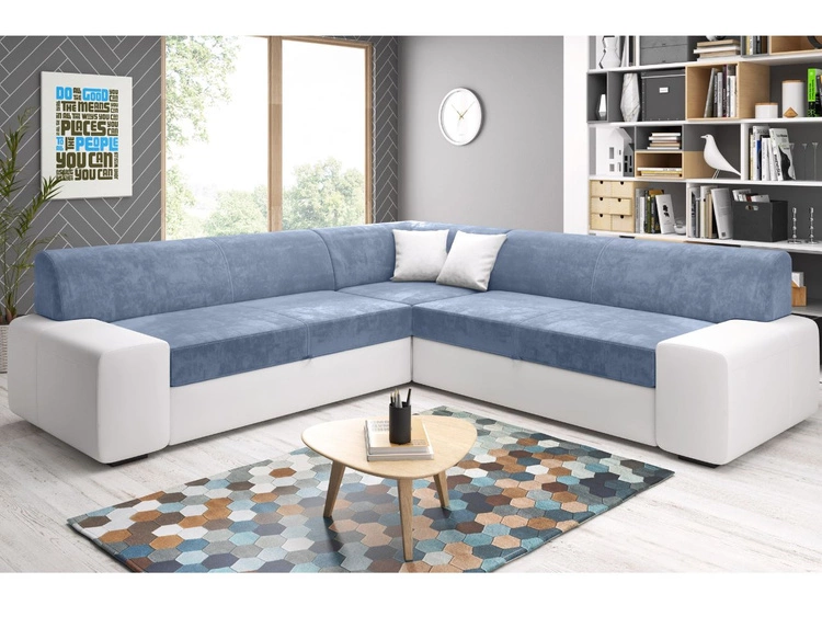 Narożnik L Prawy z funkcją spania i pojemnikiem Fresto Maxi Niebieski, Biały