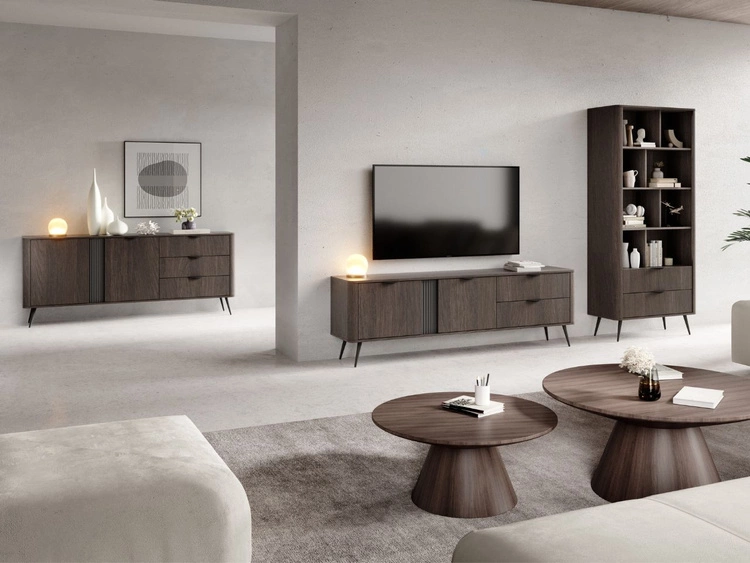 Szafka pod telewizor z szufladami i drzwiczkami Denis Dąb Sand Grande, Matera