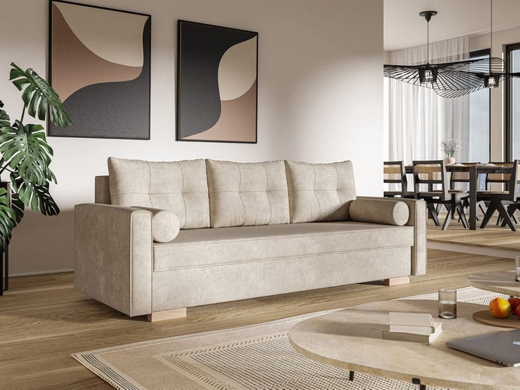 Kanapa z funkcją spania i pojemnikiem na pościel Pori beżowa