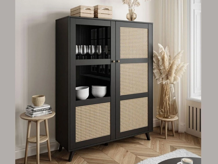 Witryna stojąca przeszklona w stylu boho Bellance czarna