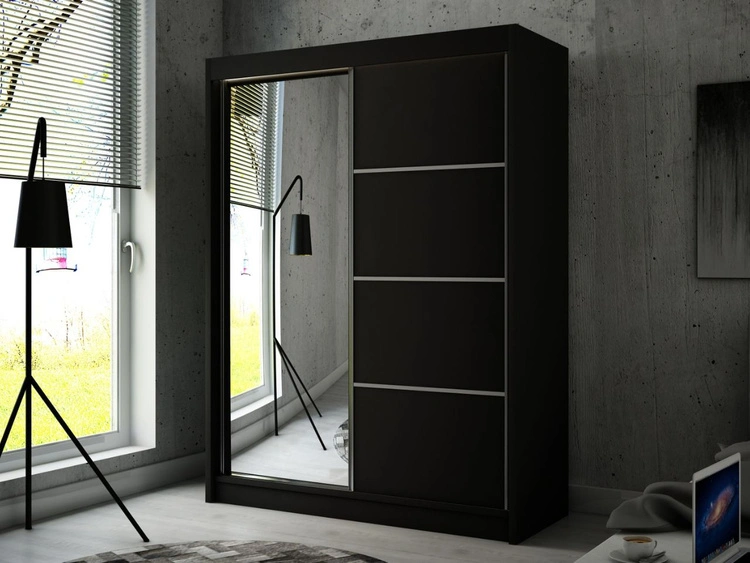 Szafa przesuwna 150 cm z lustrem i oświetleniem LED Luzio Czarna