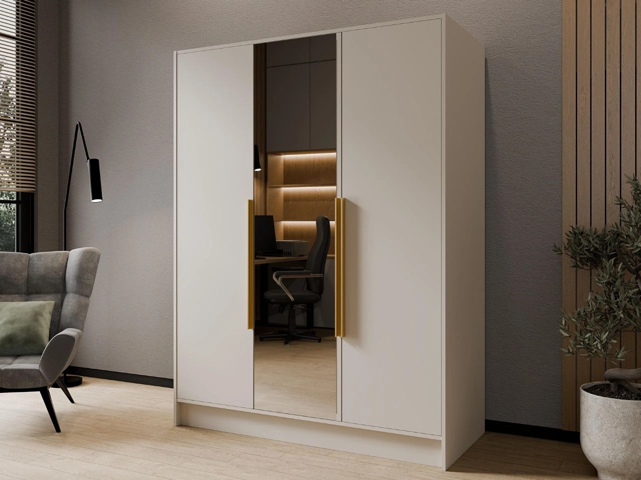 Szafa otwierana z lustrem 200 cm Lucca Kaszmir z złotymi uchwytami