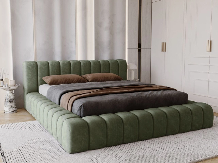 Łóżko tapicerowane z pojemnikiem na pościel i stelażem 180x200 Italia Zielone