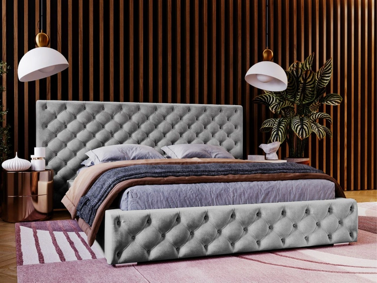 Łóżko tapicerowane z pojemnikiem i stelażem 200x200 Apollo Jasnoszare