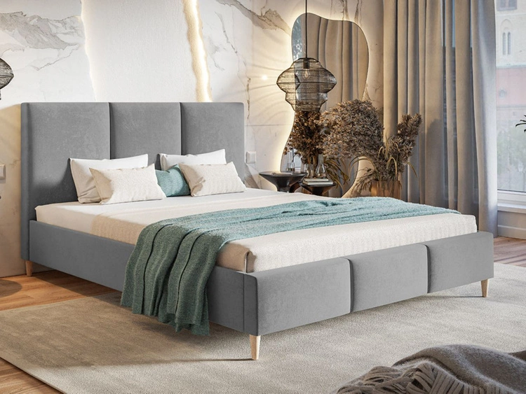 Łóżko tapicerowane ze stelażem 160x200 Trio Szary
