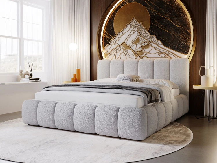 Ilość produktów: 1552Łóżko tapicerowane bez pojemnika ze stelażem 140x200 Cloud w tkaninie bouclé Jasnoszare