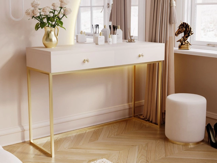 Toaletka z szufladami Belleza Kaszmir połysk Złoty stelaż