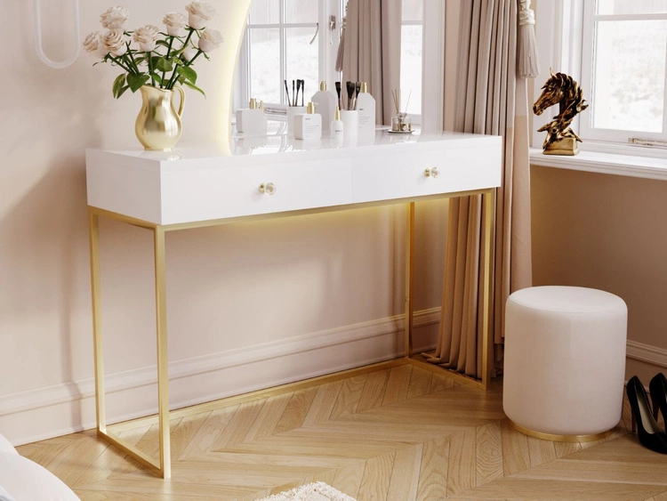 Toaletka z szufladami Belleza Kaszmir połysk Złoty stelaż