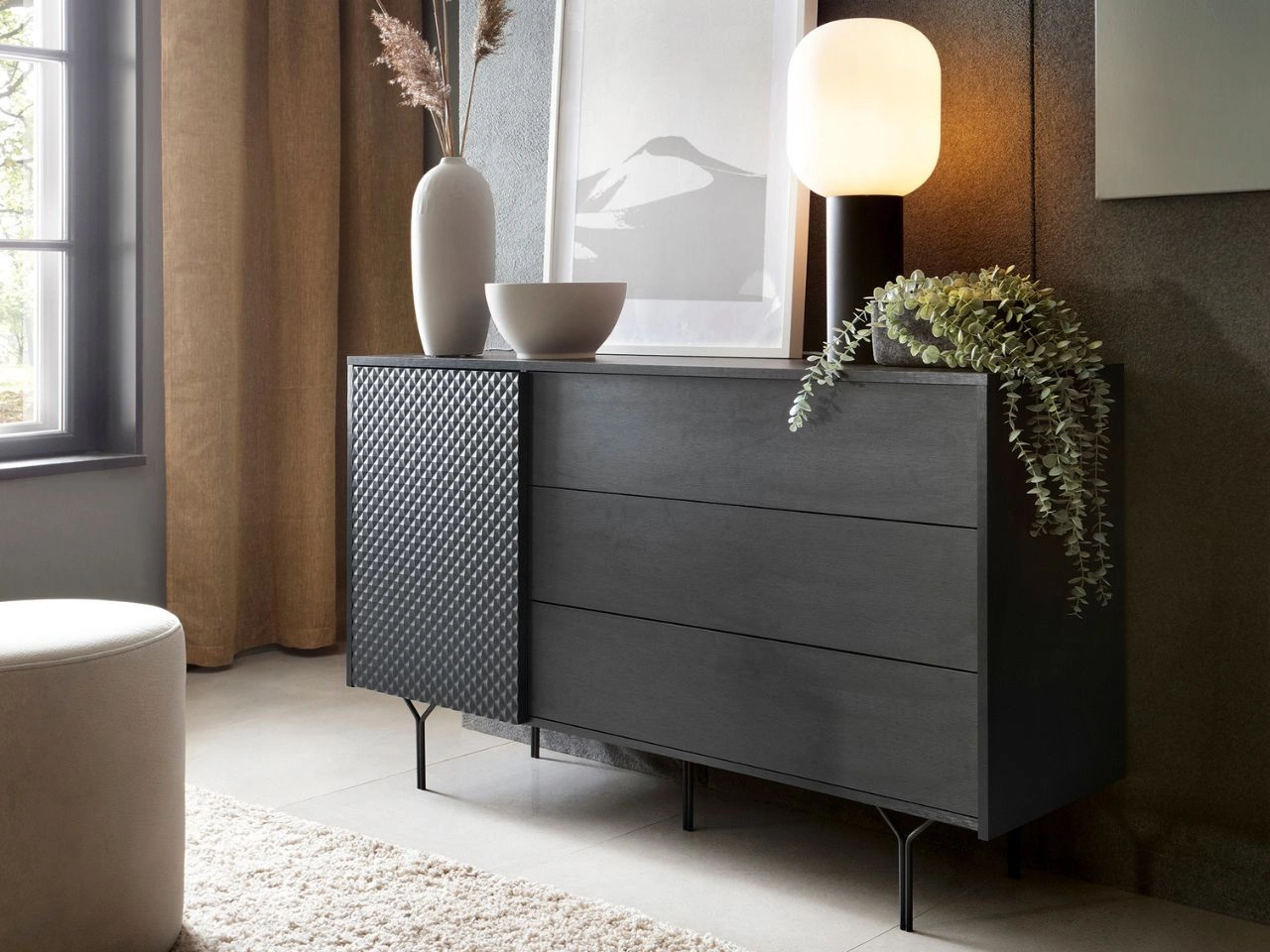 Komoda z jednym skrzydłem drzwiowym i szufladami Ravi Czarna