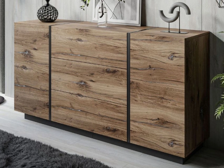 Ilość produktów: 165Dwudrzwiowa komoda 158 cm z trzema szufladami Lunelie dąb Flagstaff
