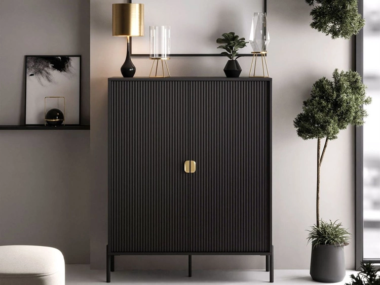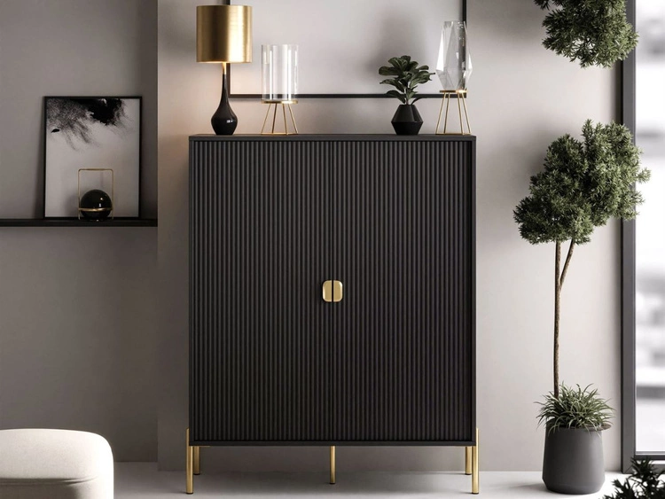 Ilość produktów: 116Wysoka komoda dwudrzwiowa ze złotymi uchwytami Orlean czarny mat