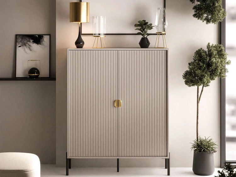 Wysoka komoda dwudrzwiowa ze złotymi uchwytami Orlean kaszmir mat