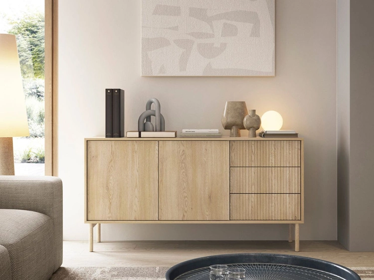 Dwudrzwiowa komoda 158 cm z trzema szufladami Lunelie dąb Flagstaff