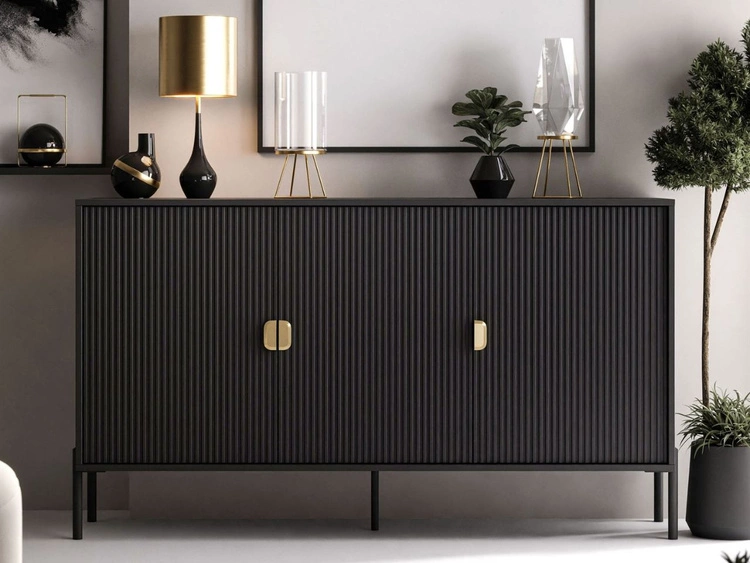 Ilość produktów: 85Dwudrzwiowa komoda 158 cm z trzema szufladami i złotymi uchwytami Lunelie czarny połysk