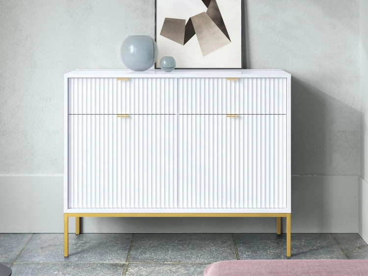 Komoda z drzwiami i szufladami na złotych nogach Viva Biała
