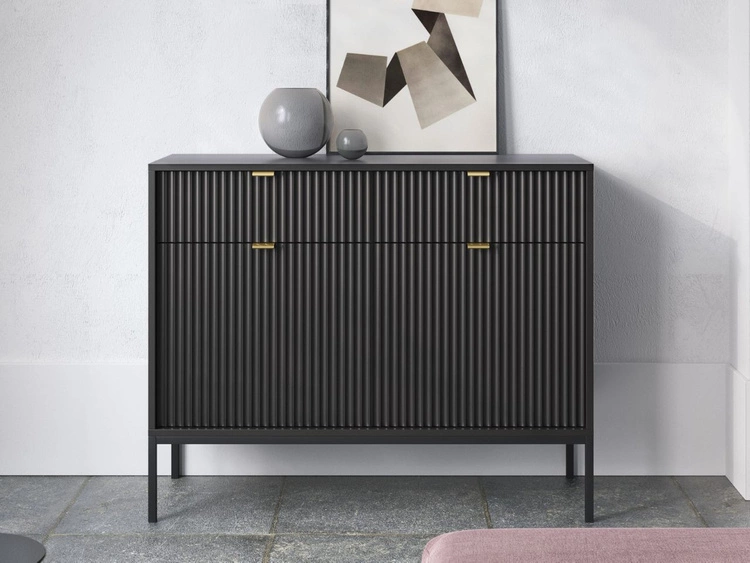 Ilość produktów: 110Komoda z drzwiami i szufladami Amber czarna na czarnych nogach