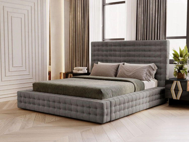 Łóżko tapicerowane z pojemnikiem i stelażem 180x200 Barbados Szare