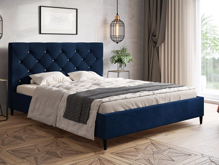 Łóżko tapicerowane z pojemnikiem i stelażem 140x200 Loris Ciemnoniebieskie