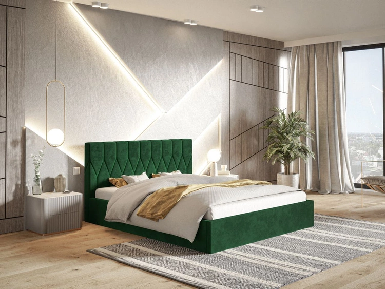 Łóżko tapicerowane z pojemnikiem i stelażem 160x200 Valencia Zielony