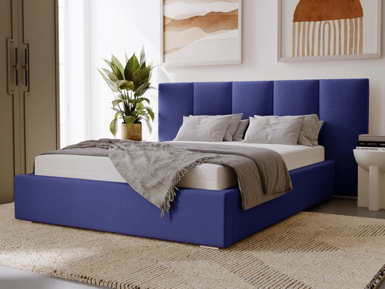 Łóżko tapicerowane z pojemnikiem i stelażem 160x200 cm Lizbona Niebieskie