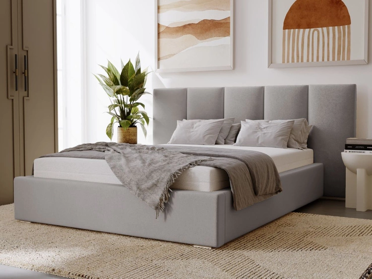 Łóżko tapicerowane z pojemnikiem i stelażem 160x200 Alicante Jasny szary
