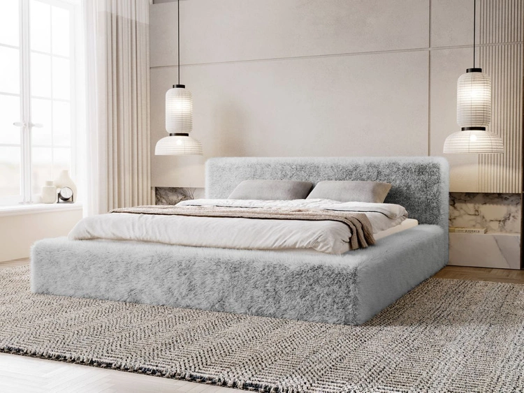 Łóżko tapicerowane z pojemnikiem i stelażem 160x200 cm Paris Jasnoszare
