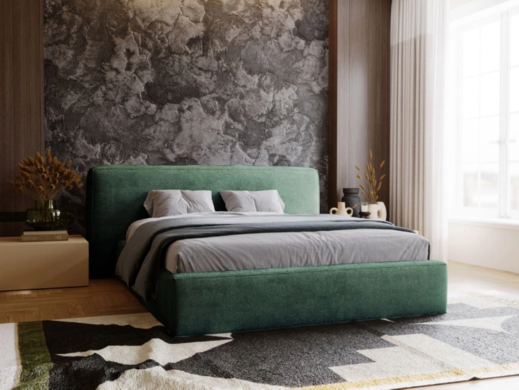 Łóżko tapicerowane z pojemnikiem i stelażem 180x200 cm Monza Zielone