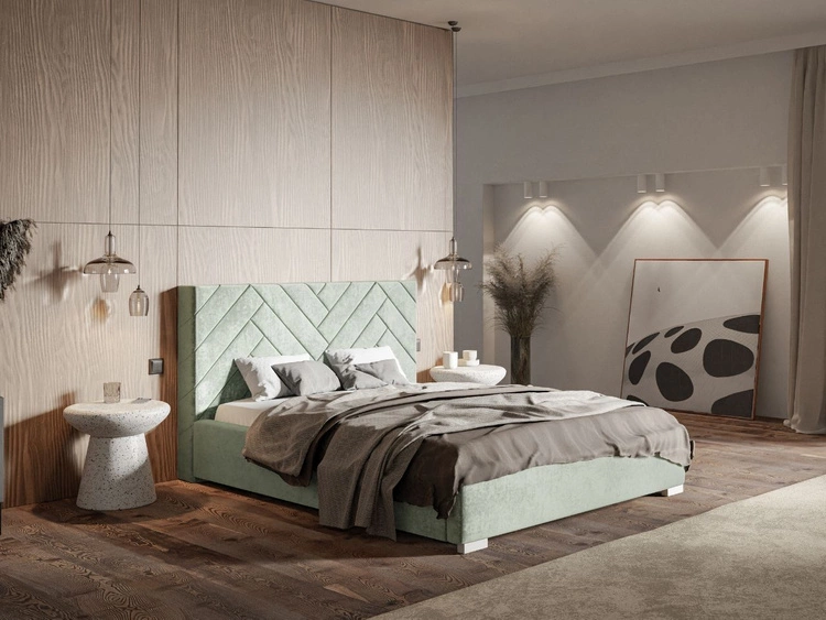 Łóżko tapicerowane z pojemnikiem i stelażem 160x200 Toreto Jasnozielone