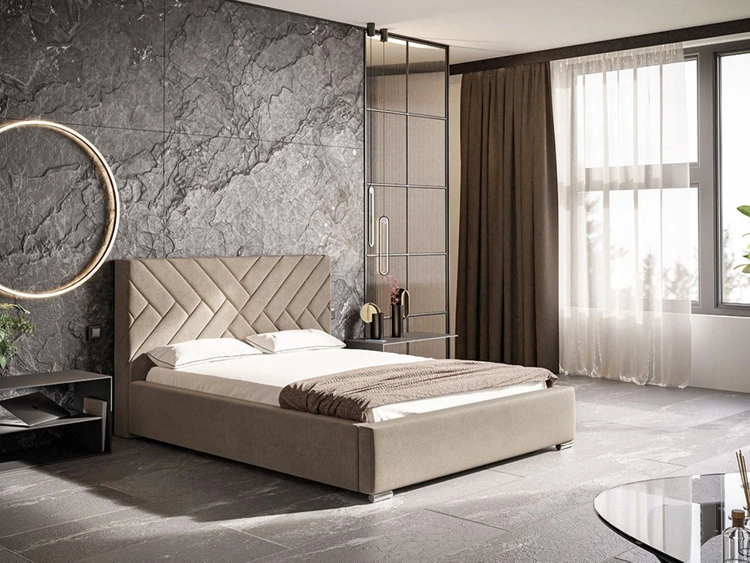 Łóżko tapicerowane z pojemnikiem i stelażem 180x200 Tonale Beżowe