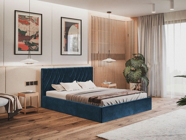 Łóżko tapicerowane z pojemnikiem i stelażem 160x200 Tonale Granatowe