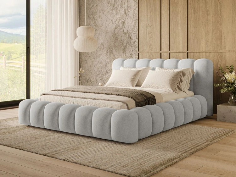 Łóżko tapicerowane z pojemnikiem i stelażem 140x200 Mali Szare